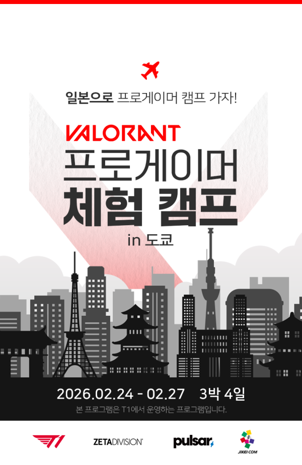 T1 VALORANT CAMP in 도쿄 OPEN 최고관리자 2026-01-10 최고관리자 0 178 01.10 17:57 T1 VALORANT CAMP in 도쿄 신청은 ‘수강 신청’ 클릭 후 T1 VALORANT CAMP in 도쿄 수강 신청서를 작성해주세요.