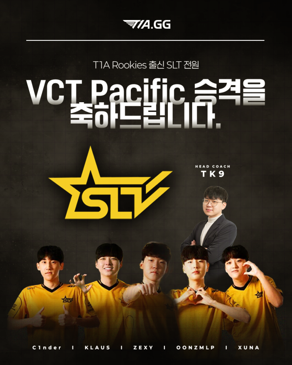 T1A Rookeis 출신 SLT VCT Pacific 승격 최고관리자 2025-10-27 최고관리자 0 18 10.27 20:42 T1A Rookeis 출신 SLT 선수 전원의 VCT Pacific 승격을 축하드립니다.
