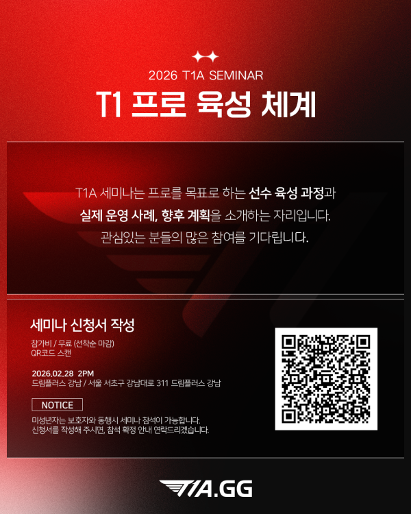 2026 T1A 세미나 최고관리자 2026-01-29 최고관리자 0 22 01.29 21:19 2026 T1A 세미나 신청은 ‘수강 신청’ 클릭 후 '2026 T1A 세미나 신청서'를 작성해주세요.