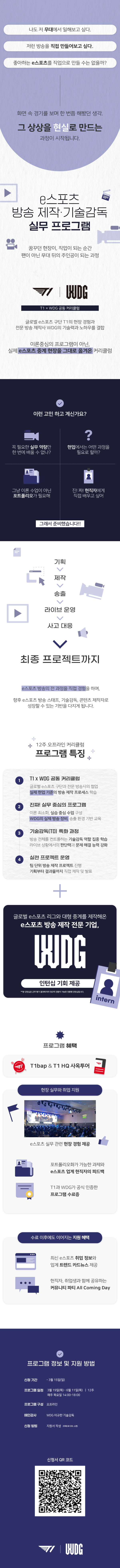 [ T1 X WDG ] e스포츠 방송제작&기술감독 실무 프로그램 신청은 아래 링크를 통해 신청서를 작성해주세요.