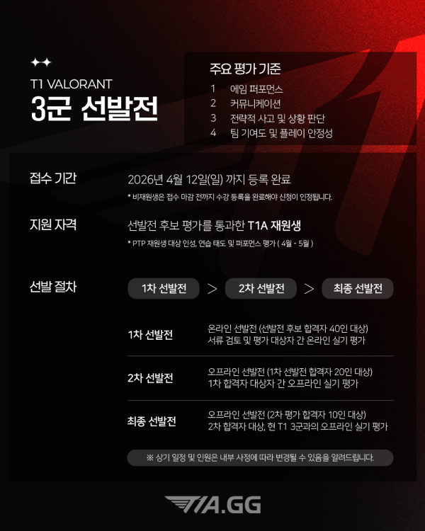 2026년 상반기 [T1 VAL 3군] 선발전 안내