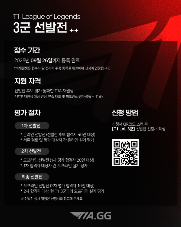 2025년 하반기 [T1 LoL 3군] 선발전 안내