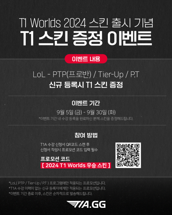 프로모션 코드 [ 2024 T1 Worlds 우승 스킨 ]